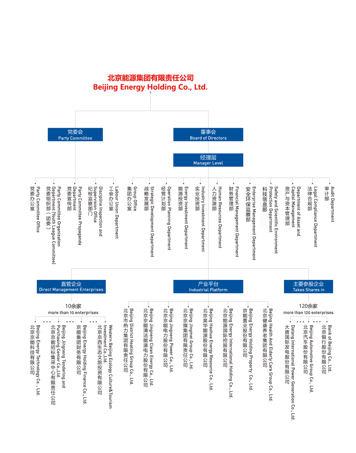 北京能源集團(tuán)有限責(zé)任公司(以下簡稱“京能集團(tuán)”或“集團(tuán)”)是北京市人民政府出資設(shè)立的國有獨(dú)資公司,肩負(fù)著保障首都北京能源安全可靠供應(yīng)的重任。集團(tuán)成立于2004年,由原北京國際電力開發(fā)投資公司和原北京市綜合投資公司合并而成,2011年、2014年先后又與北京市熱力集團(tuán)有限責(zé)任公司、北京京煤集團(tuán)有限責(zé)任公司實(shí)施合并重組,實(shí)現(xiàn)了產(chǎn)業(yè)鏈條融合互補(bǔ)。經(jīng)過多年的資源整合,集團(tuán)由單一能源產(chǎn)業(yè)發(fā)展為熱力、電力、煤炭、健康文旅等多業(yè)態(tài)產(chǎn)業(yè)格局。2024年底,集團(tuán)資產(chǎn)規(guī)模達(dá)4934億元,年?duì)I業(yè)收入975億元,全資及控股企業(yè)860余家,參股企業(yè)120余家,擁有員工3.4萬余人,投資區(qū)域遍布全國33個(gè)省市區(qū)以及海外,控股京能清潔能源、京能電力、昊華能源、京能置業(yè)、北京能源國際、京能熱力六家上市公司,盈利水平長期穩(wěn)居北京市屬企業(yè)前列。2024年在中國企業(yè)500強(qiáng)排名第247位,中國服務(wù)企業(yè)500強(qiáng)排名第87位。